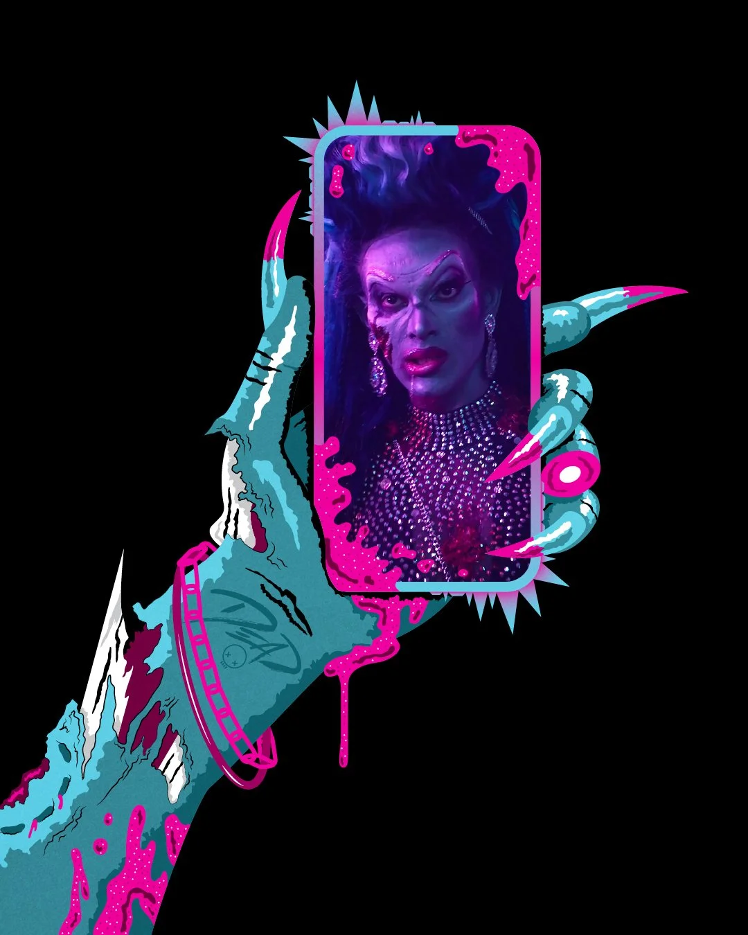 Tina Romero wrote the film, Queens of the Dead, a story involving drag queens and the apocalypse with an 80s aesthetic. She hired me to create a movie poster and logo that pays homage to her father, George Romero‘s Dawn of the Dead.