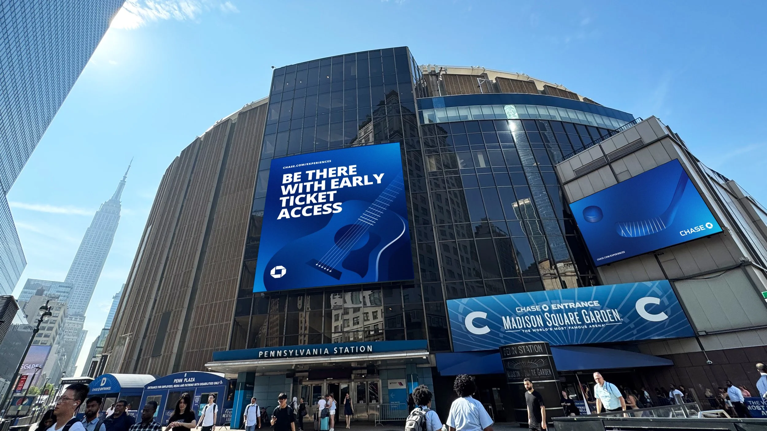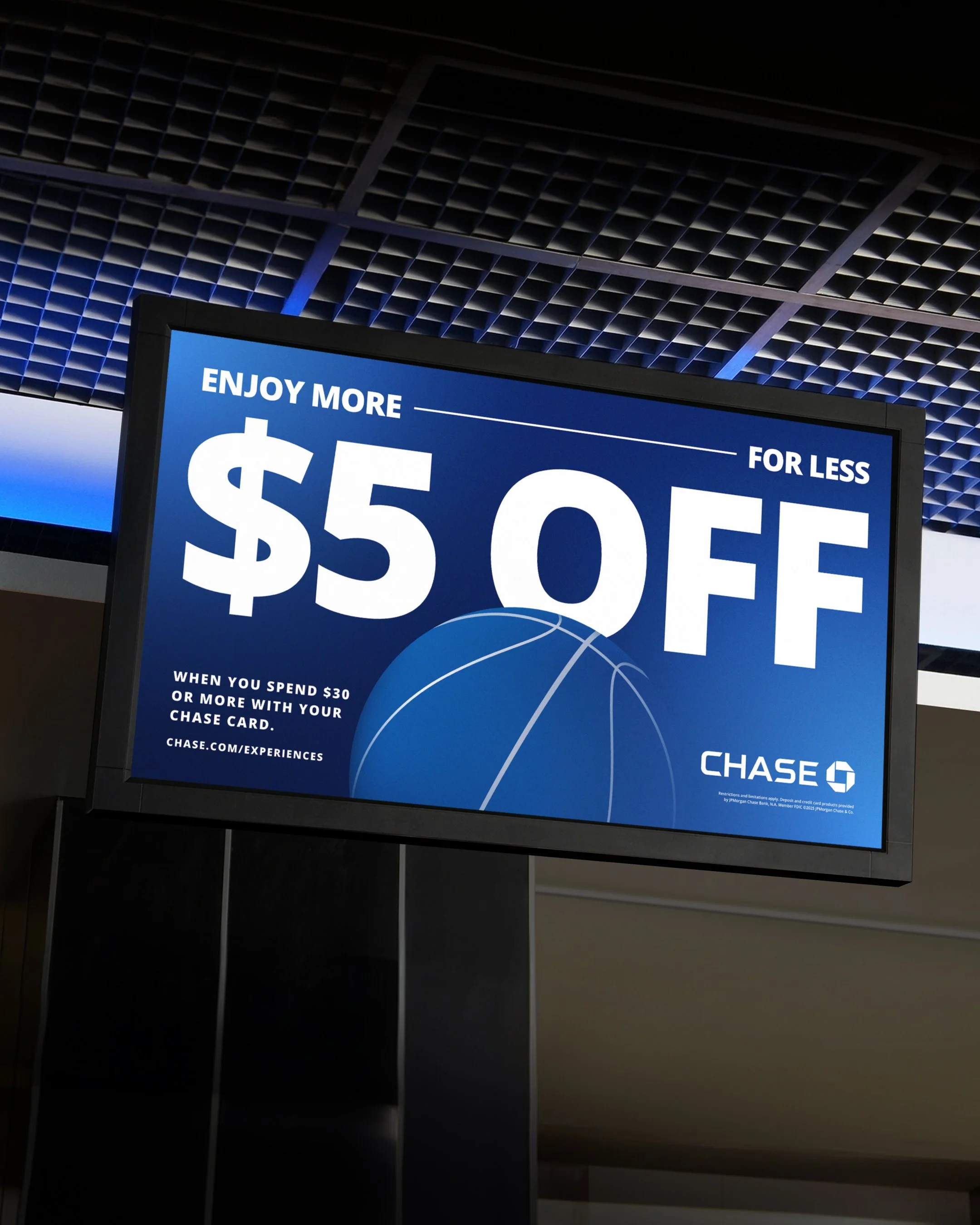 Madison Square Garden is literally the world's most famous arena — so the work had to hold up. We built out a graphic system that could flex across sports and entertainment, pairing Chase's signature blue with a suite of illustrated assets that made every reason to use your card feel as exciting as the event itself.